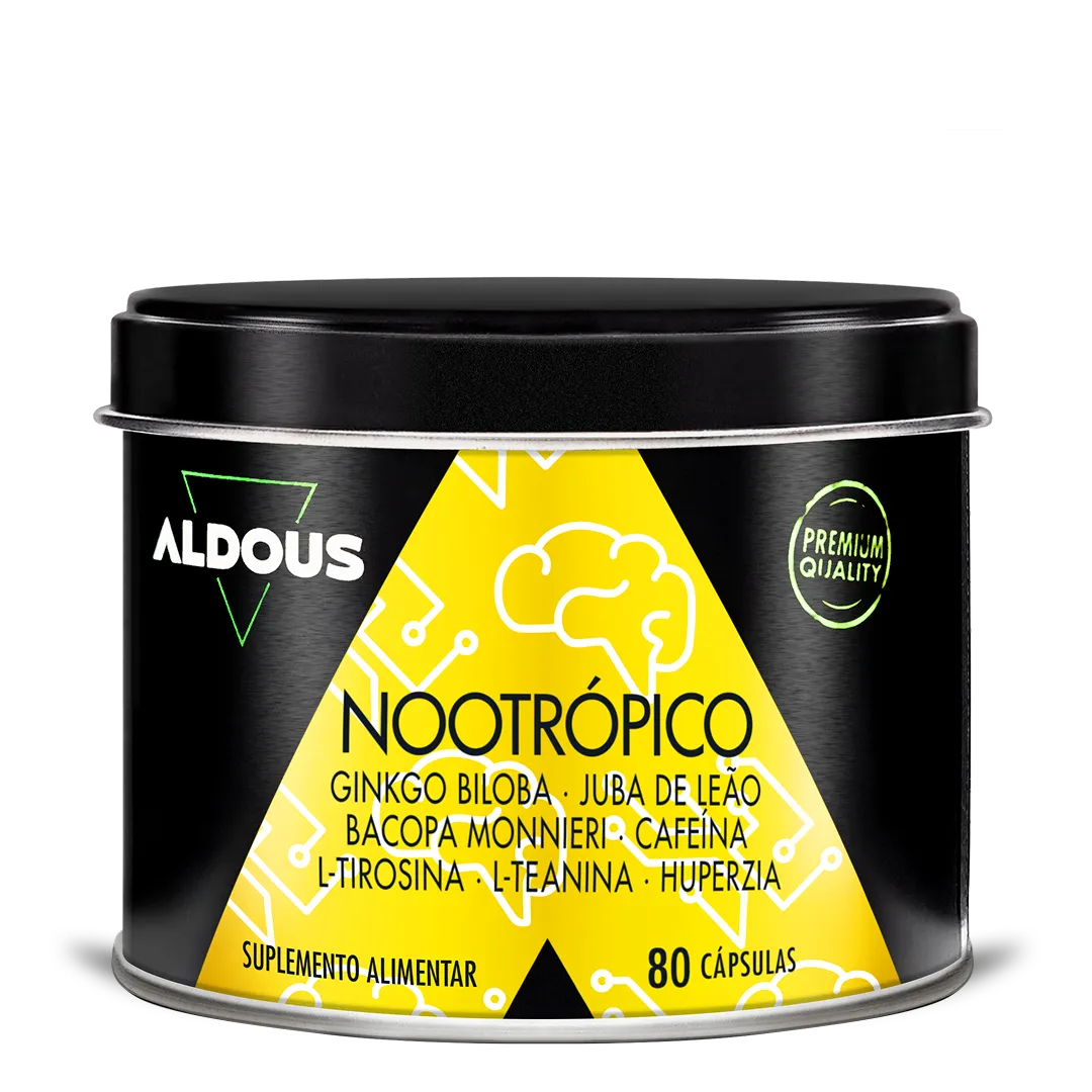 A formulação avançada do Nootrópico Aldous é ideal para estudantes, candidatos a concursos e profissionais que precisam de foco. Combina Ginkgo Biloba, Juba‑de‑Leão, Cafeína Anidra, Bacopa Monnieri, L‑Tirosina, L‑Teanina e Huperzia Serrata para apoiar as funções cognitivas e a memória. Além disso, contribui para a circulação sanguínea normal, associada ao desempenho cerebral.