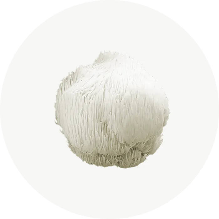 Cogumelo com propriedades adaptogénicas, conhecido por apoiar a saúde cognitiva e contribuir para o fortalecimento do sistema imunitário.